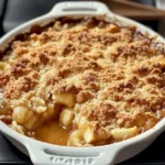 Pour these beautifully spiced apples into your prepared baking dish, spreading them evenly. Imagine the warm, gooey magic that’s about to happen!