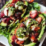 Avocado Strawberry Salad is a delicious and visually stunning dish that is sure to excite your senses. This salad combines creamy avocados with the sweet juiciness of strawberries, creating a perfect harmony of flavors and textures that is both refreshing and hearty. The addition of fresh mozzarella and a delightful pistachio pesto elevates this meal into something extraordinary. The tangy balsamic reduction adds a gourmet touch, completing this vibrant dish. With its vibrant colors and delectable taste, it’s a recipe that’s definitely worth making on any occasion.