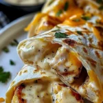 These ingredients work harmoniously to create a wrap that’s cheesy, flavorful, and utterly satisfying. The chicken, seasoned perfectly, pairs wonderfully with the rich cheeses and a hint of garlic, while the warm tortillas hold it all together.