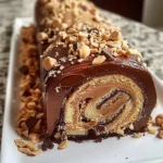 A decadent dessert that beautifully combines rich chocolate and creamy peanut butter in a delightful rolled cake.