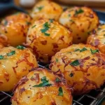 Delight in the warm, cheesy goodness of Crispy, Cheesy Garlic Butter Potato Bombs, featuring a crispy exterior and creamy, cheesy interior.