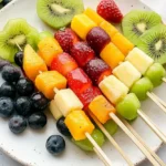 These vibrant rainbow fruit skewers are easy to assemble, bursting with flavor, and served with a creamy honey-lime yogurt dip, perfect as a healthy snack or refreshing dessert.