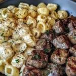 A delightful combination of sizzling garlic butter steak bites and creamy Parmesan pasta shells, perfect for cozy family dinners or entertaining guests.