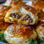 Garlic Parmesan Cheeseburger Bombs can be served as a delicious appetizer, a fun party bite, or a standout main dish. Pair them with a simple garden salad dressed with vinaigrette for a light, fresh contrast, or serve them alongside crispy French fries for that classic comfort food experience.