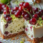 Lemon-Lime Cherry Pistachio Cheesecake is a delightful dessert that tantalizes your taste buds with every bite. Its creamy, smooth texture combined with the refreshing citrus notes of lemon and lime presents a perfect harmony of flavors, while the vibrant red cherries add a pop of color and sweetness that is difficult to resist. Whether you’re celebrating a special occasion or simply indulging yourself after a long day, this cheesecake is a showstopper that will impress everyone at the table.