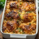 A comforting casserole with baked chicken and creamy rice, perfect for busy weeknights.