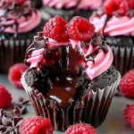 Decadent cupcakes filled with a luscious molten center of raspberry jam and rich chocolate that oozes with every bite.
