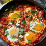 Shakshuka With Feta is a delightful and vibrant dish that brings the enchanting colors and flavors of North Africa and the Middle East right to your table. This one-pan wonder features perfectly poached eggs nestled in a bed of spiced tomato sauce, complemented by creamy crumbles of feta cheese that add a delightful tang. The robust aroma of garlic, cumin, and paprika fills your kitchen, enticing everyone to gather around the stove. If you’re looking for a recipe that’s not only easy to prepare but also visually stunning and completely satisfying, then Shakshuka With Feta is a must-try meal. Perfect for any meal of the day, it’s a dish that never fails to impress!