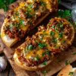 Sloppy Joe Garlic Bread is the ultimate comfort food that brings together the classic flavors of a beloved dish in a new and exciting format. Imagine biting into warm, crispy bread, generously topped with a savory ground beef mixture that’s perfectly seasoned and finished off with gooey melted cheddar cheese. This dish checks all the boxes: it’s messy, delicious, and utterly satisfying. Best of all, it’s easy to prepare! In this step-by-step recipe, we’ll guide you through creating this mouthwatering Sloppy Joe Garlic Bread that’s destined to be a hit at your next family gathering or casual dinner.