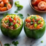 If you have leftovers, Stuffed Bell Peppers store beautifully! Allow them to cool completely, then place them in an airtight container in the fridge for up to 3 days. Alternatively, you can freeze them by wrapping each stuffed pepper individually in plastic wrap before placing them in a freezer-safe bag for up to 3 months.